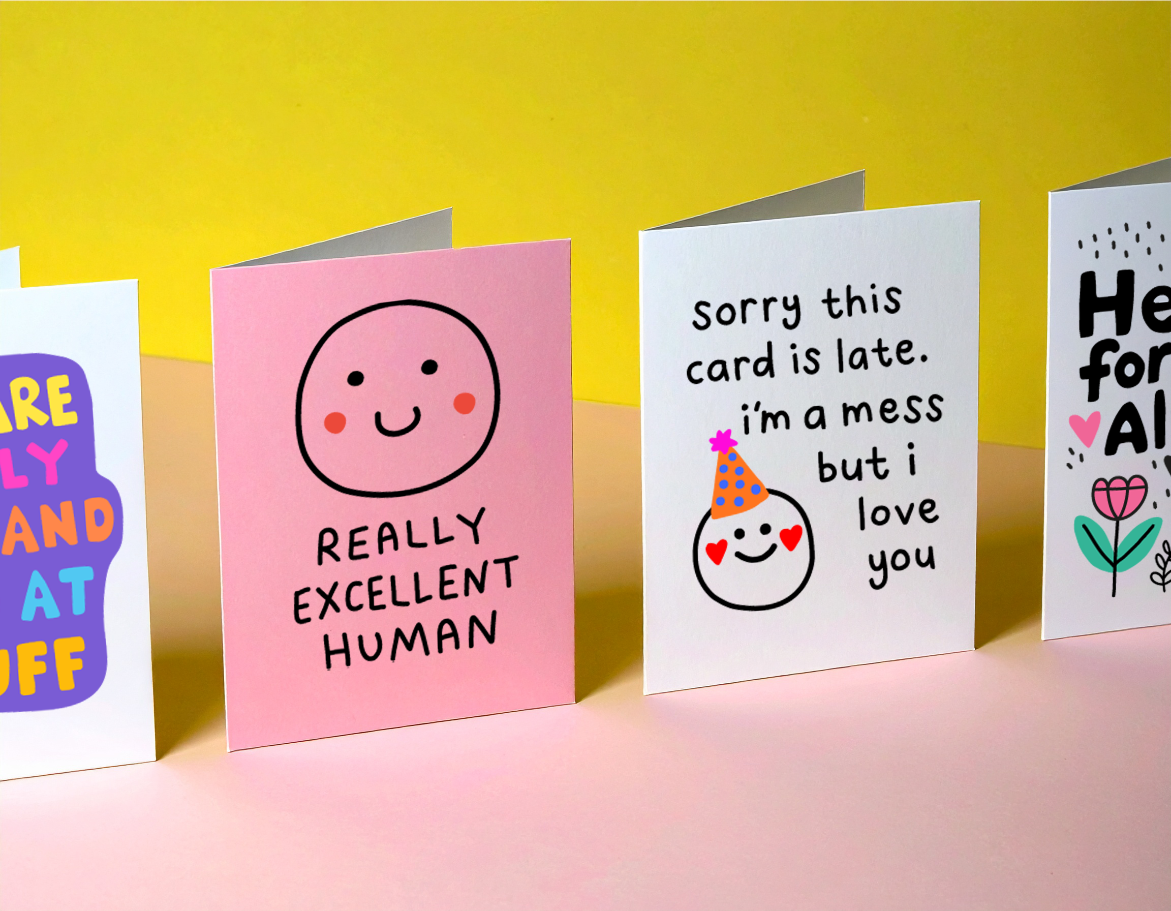 All of the cards are designed by me (Jess!) and are essentially love letters to my friends and family, who are chaotic, bizarre, and heaps of fun - just like the cards. I hope your special people love them just as much.